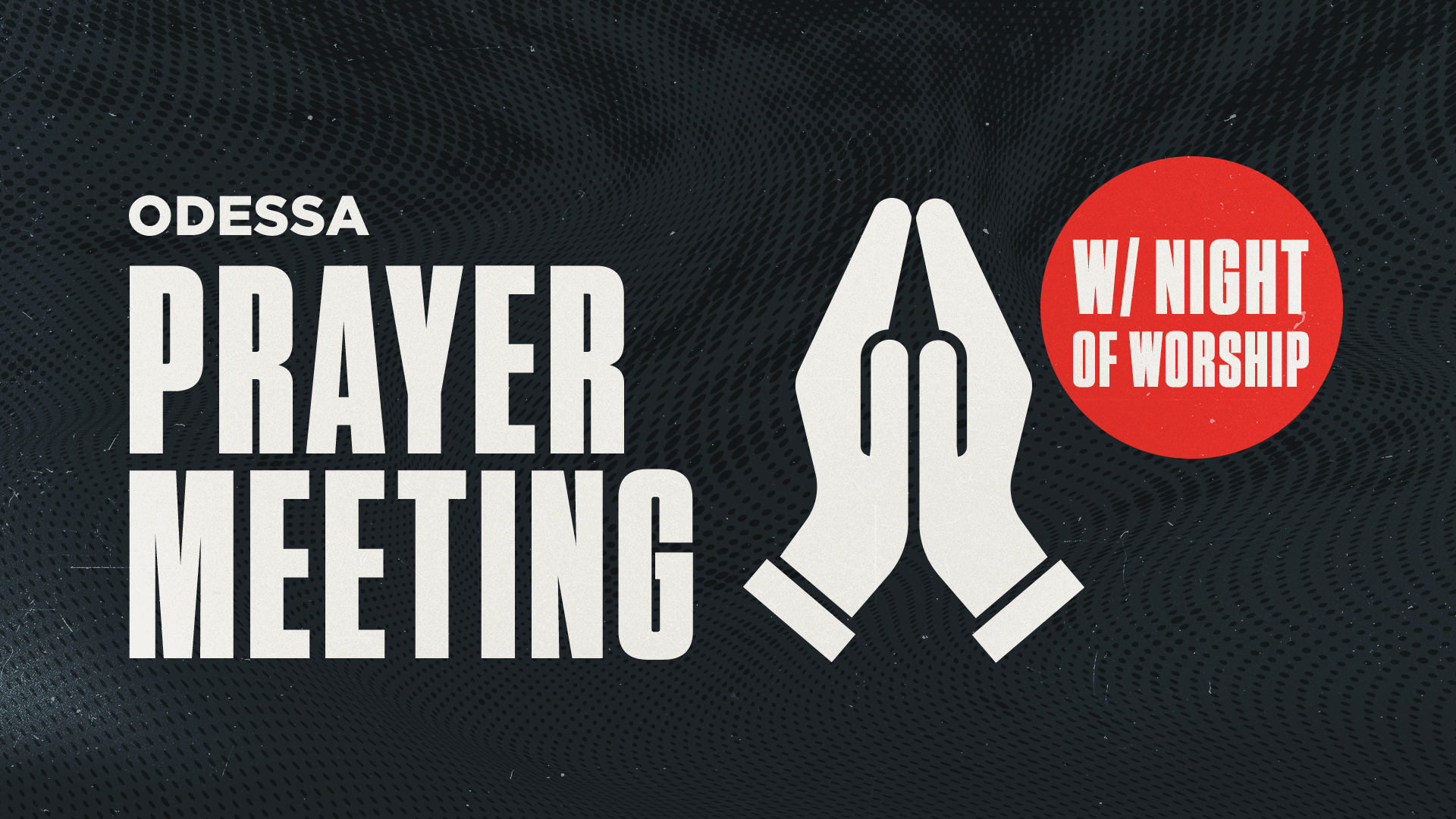 Our next prayer meeting and night of worship will be on Thursday, March 19 from 7:00-8:00PM at our Odessa Ministry Center. This particular prayer meeting will have a special focus to help us prepare for Easter weekend coming up in April. We will spend time in prayer and singing together contemplating Christ’s path He took towards His death, burial, and resurrection and what that means for us. Experience the power of prayer as we come together to lift our voices in worship, intercession, and supplication for the life-changing gospel of Jesus Christ to impact our community, our nation, and our world. We encourage all to join us for this important gathering.